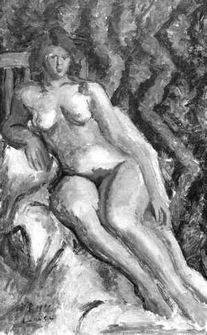 正因為這段著名故事,劉海粟先生的人體作品增加了許多傳奇色彩,成為中國人體藝術繪畫發(fā)展的象征性藝術符號。北京匡時2010年春拍出現的這幅油畫《裸女》,尺寸為80×50cm,創(chuàng)作于1931年,是劉海粟先生第一次去歐洲考察時,在巴黎所繪,選用的是西洋模特。作品完成后,參加了由上海市政府主辦的1932年在上海英租界北京路貴州路口七號英士紀念堂湖社舉辦的《劉海粟游歐作品展覽會》。此次展覽由抗日戰(zhàn)爭時期擔任國民政府主席的林森在畫展引言中說,“中國畫主神韻,外國畫偏形相,海粟作品獨能洽中外,另辟蹊徑自足獨步一時”;蔣介石為畫展題字為“海天鴻藻”;國民黨上海市市長吳錢城為展覽會寫序;北大校長蔡元培題跋;以及陳樹人、路易賴魯阿、潘公展等社會各界名人為畫展致詞。隔年,商務印書館出版的《海粟油畫》又一次刊登了僅有的此幅人體作品。