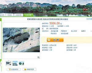 據(jù)記者了解,淘寶網(wǎng)所拍賣的龍虎山9號洞穴,系丹霞地貌所形成的天然洞穴,起拍價從1元起,拍賣價格也和一般的拍賣有很大不同:起拍價一元,競拍者加價幅度也僅需一元。因此,在該拍賣活動舉行之初,便得到了廣大網(wǎng)民的熱烈響應(yīng),短短數(shù)天,“龍虎山9號洞”已經(jīng)拍到了上萬元的高價。
