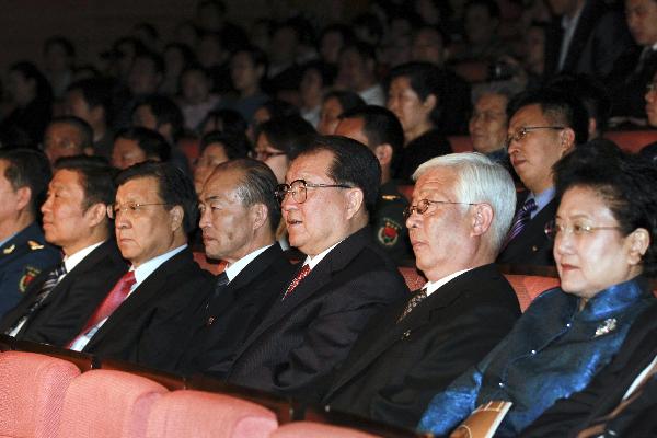 中共中央政治局委員、中央書記處書記、中央宣傳部部長劉云山,中共中央政治局委員、國務(wù)委員劉延?xùn)|,中共中央政治局委員、中央書記處書記、中央組織部部長李源潮一同觀看演出。