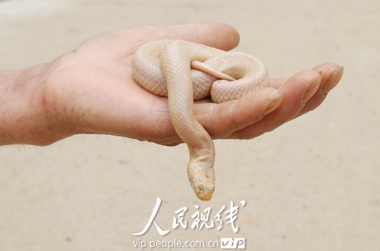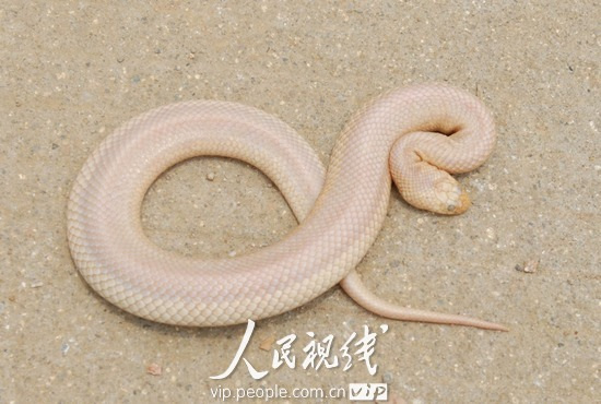 2010年5月10日,江西宜春市袁州區(qū)柏木鄉(xiāng)棠梅村一農(nóng)民在魚塘里捕魚時(shí),捕獲一條罕見白蛇。這條蛇全身顏色呈白玉色,體長約42厘米,體重約180克。據(jù)當(dāng)?shù)匾吧鷦游锉Wo(hù)部門的專家介紹,通體潔白的蛇可能是因?yàn)閯游锘蜃儺惗鴮?dǎo)致“白化型”而形成的,較為罕見。