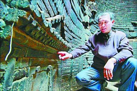 該座宋墓位于南水北調(diào)焦作段普濟(jì)路一處工地上。記者昨日到達(dá)現(xiàn)場(chǎng)時(shí),南水北調(diào)焦作段施工人員正在幫助文物工作人員保護(hù)發(fā)掘現(xiàn)場(chǎng)。據(jù)焦作市文物工作隊(duì)古建專家趙德才介紹,圓形宋墓在焦作市所發(fā)掘的宋墓中比較罕見(jiàn),這座宋墓上所雕刻的建筑結(jié)構(gòu)清晰可見(jiàn),對(duì)研究宋代建筑有一定價(jià)值。