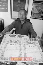 “這張海報有人出價萬元,我都不舍得賣。”昨日上午10時許,見有人來訪,50歲的李杰拿出自己最愛的寶貝——一張梅蘭芳宣傳畫,這是新中國成立前印制的。宣傳畫上,京劇大師梅蘭芳面帶微笑,依靠在一張沙發(fā)上,宣傳畫的題詞為郭沫若!靶∥輭Ρ谏,都是精選出來的。在我家的保險柜里還有近千幅海報,各種各樣的都有!崩罱苷f。