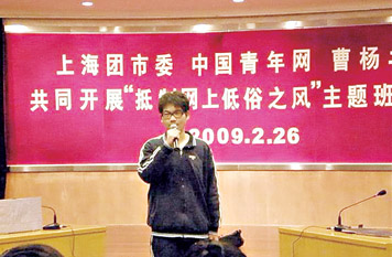 本報訊記者 范彥萍 “當(dāng)心我讓芙蓉姐嫁給你!”“裝A裝C莫裝(A+C)/2!”……這些語言或許讓你一頭霧水,卻恰恰是網(wǎng)絡(luò)流行語,更令人憂心的是,如今越來越多的學(xué)生們對這些不文明,甚至低俗的網(wǎng)絡(luò)語言信手拈來,線上學(xué),線下用。今年初,全國開展整治互聯(lián)網(wǎng)低俗之風(fēng)專項行動,專家更直言青少年是網(wǎng)絡(luò)低俗的最大受害者。昨天,由團市委、中國青年網(wǎng)等主辦的“抵制網(wǎng)上低俗之風(fēng)”主題班會活動在上海市曹楊二中和長寧區(qū)愚園路第一小學(xué)開展,趁著抵制之風(fēng)掃蕩網(wǎng)絡(luò)惡俗對校園文化的惡劣影響。