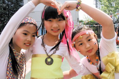 晚報訊昨天,盧灣區(qū)瞿溪路小學(xué)的師生們自行設(shè)計一次探尋世博文化的旅行。其中,師生們動手制作世博參展國的服裝,在校園T臺走秀。日本素雅端莊的和服、斐濟五彩斑斕的草裙、泰國金絲耀眼的紗麗。服飾看起來十分精美,異國風(fēng)情十足,可一打聽,這些參展國服裝可全是巧手的師生們用布頭、塑料臺布等廢舊材料制作的。除了T臺秀,學(xué)校創(chuàng)編了世博熱舞,男孩女孩齊參與,舞出活力;《海寶歡迎你》的主旋律在班班響起,自編自演的世博童謠串串燒在校園回蕩! 跤浾 錢鈺 攝影 方大綜