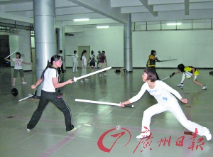 本報訊 (記者盧迎新 實習生 李婷婷攝影報道)暨南大學有個短兵協(xié)會,每周的周二、周四、周日晚上,會員們都集中練習。這種對抗性強的運動受到在校博士碩士們的熱捧,尤其吸引了一些平日里斯文纖弱的女博士加入,她們表示:“就算被打也很爽快,認為是一種時尚。”
