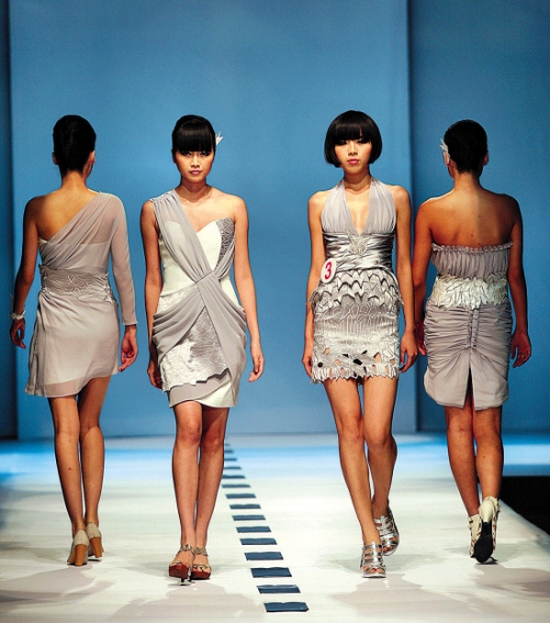 昨天晚上,為期11天的2009中國(廣東)大學生時裝周在廣州國際輕紡城落下帷幕。來自17所院校的25名選手以一場精彩的畢業(yè)作品設(shè)計決賽讓本屆大學生時裝周圓滿結(jié)束。最終,來自廣東五邑大學紡織服裝系的胡榮強作品《梭哈》將英國運動與時裝元素結(jié)合,具有較好創(chuàng)意與實用性,獲得評委青睞奪得本屆冠軍。