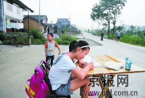 韶山學(xué)校樹木蔥蘢,風(fēng)景秀麗,教學(xué)區(qū)、運(yùn)動(dòng)區(qū)、生活區(qū)布局合理,建筑錯(cuò)落有致。入夜,住校的高中部學(xué)生開始晚自習(xí)。18歲的高三學(xué)生湯秋陽坐在貼著毛主席像的教室里寫作業(yè),專心致志。湯秋陽明年就要高考,他說“從現(xiàn)在起就該拼搏了”,并在日記本上畫了一個(gè) “高考倒計(jì)時(shí)”標(biāo)志。湯秋陽的家離學(xué)校20多公里,幾年來一直住校,他早已習(xí)慣了獨(dú)立生活,學(xué)習(xí)刻苦自覺,不需父母操心。