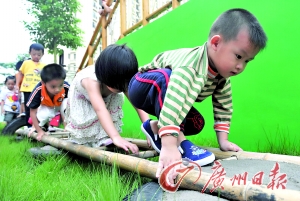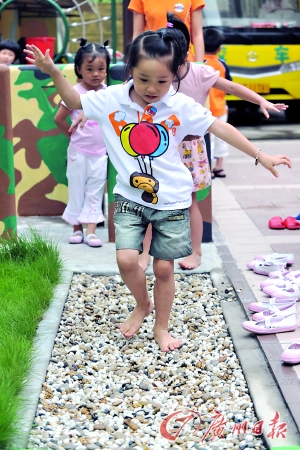 本報(bào)訊 (記者陳昕宇)赤足踩碎石、晨練時(shí)需要過(guò)“梅花樁”、俯身貼地穿越水管、輕舒猿臂通過(guò)懸掛在半空中的吊臂、寒冬冷水浴……上述情景不是出現(xiàn)在特種部隊(duì)的訓(xùn)練營(yíng)中,而是佛山一所位于高檔住宅小區(qū)的幼兒園專(zhuān)為幼兒所開(kāi)設(shè)的生存磨難教育課程。 據(jù)介紹,生存磨難課程最早起源于日本教育界,目的為磨煉學(xué)生的意志。昨日,記者來(lái)到該所幼兒園,對(duì)生存磨難教育的部分項(xiàng)目進(jìn)行了體驗(yàn)。