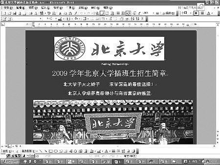 “沒有,我們這兒沒有插班生!6月1日,記者就該公司代招北大插班生的情況,咨詢了北京大學招生辦公室,一位女性工作人員連說了四個“沒有”。當記者詢問北大招辦是否知道該公司招收北大插班生的信息時,對方表示,“那可能是他們私人弄得,我們這兒沒有!