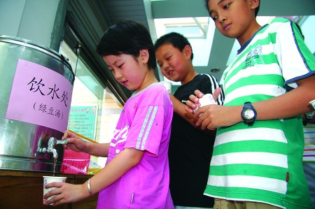 24日,槐蔭區(qū)中小學(xué)校進行了本學(xué)期的階段性測試,記者在濟南市經(jīng)七路第一小學(xué)看到,學(xué)校為學(xué)生們熬好了綠豆湯,學(xué)校衛(wèi)生室為每個教室準備了藿香正氣水、人丹、清涼油等防暑的藥品,保證學(xué)生安心考試。