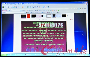 昨天,西南某高校大專畢業(yè)生小張找到本報(bào)稱,一個(gè)月前他來(lái)東莞求職,但沒能找到合適的工作。小張稱,他求職不順主要是因?yàn)樽约旱膶W(xué)歷比較低,這時(shí)他收到一條短信,稱“本公司辦理各種文憑、上網(wǎng)文憑,教育部指定的官方網(wǎng)站也可永久查詢到文憑的信息和檔案。聯(lián)系人:許小姐,QQ:974169176”。