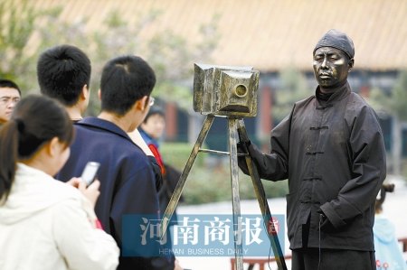 在他們之中,今年51歲的侗躍進(jìn)是最特別的一個(gè)。相比坐著彈鋼琴的余瑞,他要一直站著,一手扶著老式相機(jī),一手握著感應(yīng)器。雖然一天4小時(shí)站下來,常常會(huì)渾身酸痛,但侗躍進(jìn)仍然樂此不疲,堅(jiān)持紋絲不動(dòng),“我真心喜歡這個(gè),想一直做下去”。 -商報(bào)記者 丁亞菲/文 陳亮/圖