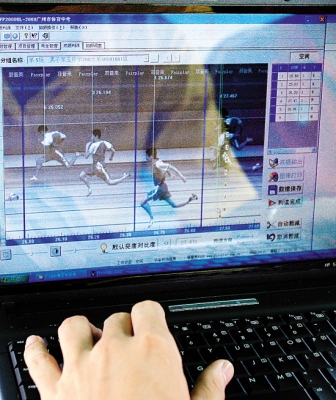 在五中的200米跑賽道上,起點(diǎn)處多了兩個(gè)黑盒子,終點(diǎn)處則有一個(gè)高臺(tái),一個(gè)攝像鏡頭時(shí)刻對(duì)準(zhǔn)終點(diǎn)線,當(dāng)學(xué)生們沖過(guò)鏡頭前的一剎那,高臺(tái)上的工作人員就可以從電腦上看到清晰的沖線照片。“起跑線的兩個(gè)黑盒子其實(shí)是傳感器,當(dāng)學(xué)生過(guò)線時(shí),通過(guò)電磁波發(fā)射,令電腦系統(tǒng)開(kāi)始計(jì)時(shí),”操作電動(dòng)計(jì)時(shí)儀的工作人員告訴記者,“終點(diǎn)線前的高速攝影機(jī)可以精確到1/1000秒,拍出非常精細(xì)的圖像,讓每個(gè)學(xué)生的成績(jī)誤差降到最小!