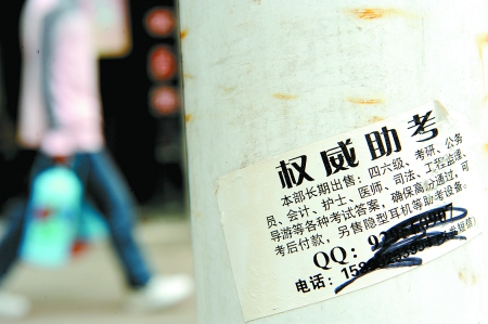 而監(jiān)考過研究生考試、公務員考試的婁老師則表示,由于參加這類考試的群體心理比較成熟,在他們使用作弊工具過程中,并不容易對付。婁老師說,盡管在考場上并沒發(fā)現(xiàn)大規(guī)?忌鞅,考試后不少試卷答案的雷同問題說明,作弊的考生大量存在。至于是如何成功作弊的,在沒有當場抓住的情況下不好說。