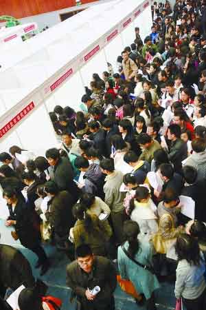 今天上午,首都師范大學(xué)體育館召開2009年中小學(xué)教師專場招聘會,1000個(gè)教師崗位面向應(yīng)屆畢業(yè)生現(xiàn)場招聘。招聘信息引來眾多應(yīng)聘者,盡管工作人員將每排人數(shù)調(diào)整為6至10人,進(jìn)場隊(duì)伍仍然排出七八百米長。