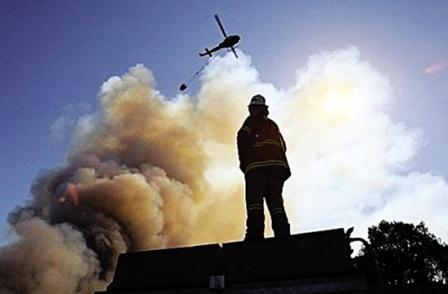 我們又一次緊張起來,集中精神,準備捍衛(wèi)自己的人身和貴重物品的安全。頭頂不時傳來直升機灑水的聲音和救火車的警笛聲。
