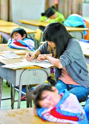早上6時(shí)開始去接學(xué)生,直到下午6時(shí)送學(xué)生回家后才能下班,“晚上學(xué)校還規(guī)定7時(shí)30分到9時(shí),老師必須到辦公室備課、改作業(yè)。”