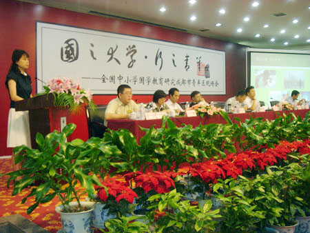 7月8日,全國(guó)中小學(xué)國(guó)學(xué)教育研究成都市青羊區(qū)現(xiàn)場(chǎng)會(huì)在蓉召開,來(lái)自北京、青島、重慶等地的上百名專家代表就國(guó)學(xué)教育在中小學(xué)校園內(nèi)的開展進(jìn)行了交流討論。據(jù)中國(guó)教育部語(yǔ)言文字應(yīng)用管理司司長(zhǎng)王登峰透露,有關(guān)部門準(zhǔn)備邀請(qǐng)歌星演唱經(jīng)典詩(shī)詞,以契合中小學(xué)生的年齡特點(diǎn)和心理需求。