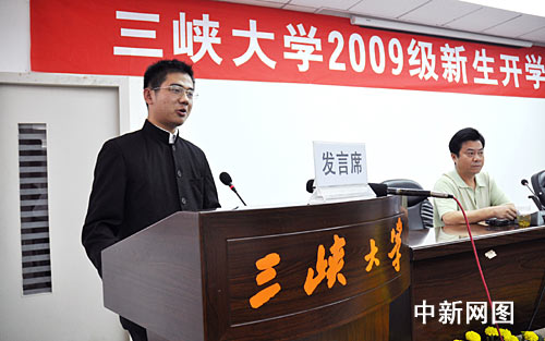 中新網(wǎng)宜昌10月9日電(記者 郭曉瑩)10月9日下午,三峽大學(xué)為包括“最牛作文考生”周海洋在內(nèi)的5名新生舉行了一個(gè)簡(jiǎn)短而隆重的開(kāi)學(xué)典禮,至此,周海洋正式就讀于三峽大學(xué)。