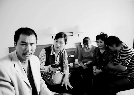 “我們進(jìn)去的時(shí)候,他整個(gè)手都是僵硬的,手背紫黑!眴嗡堃徽f起這個(gè),眼淚“嘩”地流了下來。