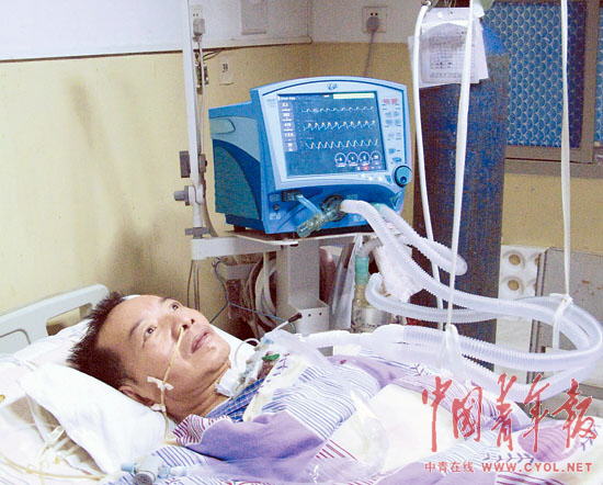 張?jiān)谠忌狭撕币姷倪\(yùn)動神經(jīng)元病。不能說話,也不能進(jìn)食,甚至無法呼吸。于是幾根白色的塑料管從藍(lán)色的呼吸機(jī)里伸出來,高高地吊起,插進(jìn)開胸后的氣管,成為支持他呼吸的唯一方式。