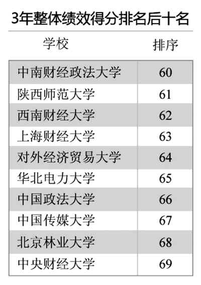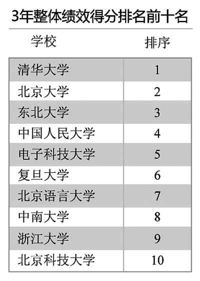 數(shù)據(jù)統(tǒng)計(jì)顯示:有近半數(shù)高校過(guò)去3年“投入多,產(chǎn)出少”;另有29所高校“產(chǎn)出高于投入”;還有7所高校投入和產(chǎn)出的排名一致,“投入產(chǎn)出相當(dāng)”。整體績(jī)效得分前3名的高校分別是清華大學(xué)、北京大學(xué)、東北大學(xué)。