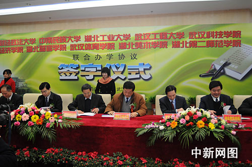 中新網(wǎng)武漢1月28日電 (艾啟平 周蘇展)武漢市南湖片區(qū)的十所高校28日簽定聯(lián)合辦學(xué)協(xié)議。這是湖北省充分發(fā)揮和利用武漢地區(qū)部委屬高校和省屬高校的學(xué)科專業(yè)優(yōu)勢(shì),整合優(yōu)質(zhì)高等教育資源,拓寬人才成長(zhǎng)渠道,提升區(qū)域整體辦學(xué)水平和人才培養(yǎng)質(zhì)量的又一重要舉措。
