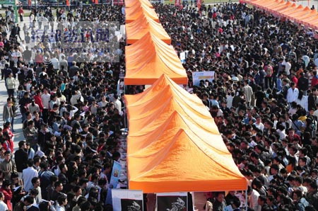 酒店“門(mén)童”、“運(yùn)送員”,這些原本與大學(xué)生不沾邊的崗位,昨日(11月20日)出現(xiàn)在福州舉行的大學(xué)生招聘會(huì)上。昨日,由福建省人事廳、中國(guó)海峽人才市場(chǎng)聯(lián)合舉辦的“福建省2009年大中專(zhuān)畢業(yè)生福州地區(qū)大學(xué)新校區(qū)專(zhuān)場(chǎng)招聘會(huì)暨大學(xué)生見(jiàn)習(xí)招聘會(huì)”,在福建師范大學(xué)旗山校區(qū)拉開(kāi)帷幕,有上萬(wàn)名學(xué)生進(jìn)場(chǎng)應(yīng)聘。