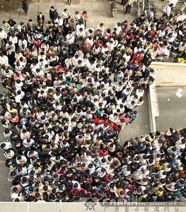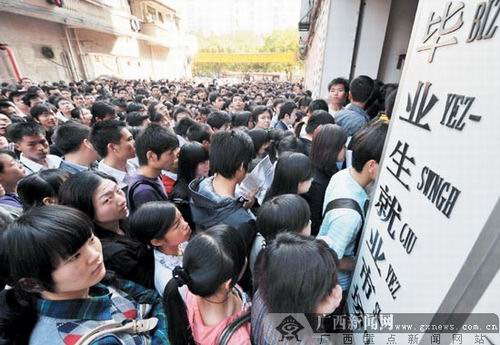 2月11日,廣西師范學(xué)院畢業(yè)生小陳特地起了個大早,趕在8時30分來到南寧市人才市場,參加當(dāng)天舉行的春季高校畢業(yè)生專場招聘會。令小陳吃驚的是,人才市場入口處已有兩三百名畢業(yè)生在等候,原打算提前占據(jù)“有利地形”的他,只能排在離入口約20米遠的空地。
