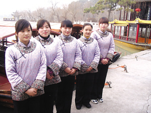 在小崔邀請(qǐng)下,兩個(gè)船娘還為全國(guó)的觀眾合唱了揚(yáng)州小調(diào)《楊柳青》選段,博得了觀眾長(zhǎng)久的掌聲。最后,小崔做起了“瘦西湖船娘廣告”:“大學(xué)生船娘不僅歌唱得好,而且笑容甜美!蓖瑫r(shí)不忘給出“總結(jié)”:大學(xué)生船娘是“高級(jí)導(dǎo)游”,是在就業(yè)難的大背景下,大學(xué)生轉(zhuǎn)變就業(yè)觀念的一例。
