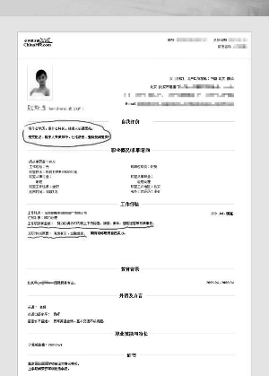 發(fā)帖者自稱是某公司的HR,天天都得從一大堆簡歷中挑到半夜,累個半死。不過這幾天她發(fā)現(xiàn)一些挺不著調(diào)、很搞笑簡歷,所以挑出幾個“個性的”供大家“觀賞”。發(fā)帖者還把這些簡歷上傳到網(wǎng)上,當(dāng)然,照片里已經(jīng)遮掉了應(yīng)聘者的姓名和聯(lián)系方式。