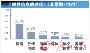 然而值得引起我們注意的是,本報(bào)在大洋網(wǎng)佛山頻道、佛山本地論壇天天新網(wǎng)站發(fā)起了一項(xiàng)關(guān)于此事件的網(wǎng)絡(luò)調(diào)查顯示,事件中傷得最深的并非錄音中的男女主角,而是“90后的整體形象”以及“整個(gè)社會(huì)都受到傷害”,而在獲取性知識(shí)渠道方面,調(diào)查顯示家庭教育和學(xué)校教育的排名竟然在倒數(shù)第一和第二,兩項(xiàng)疊加起來也只占到5.9%,遠(yuǎn)遠(yuǎn)落后于第二名“色情影碟或書籍”。