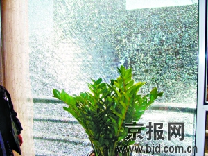 無故“受傷”的鋼化玻璃位于崇文區(qū)華城社區(qū)3號樓南側,對面就是肇事學生所在中學的教學樓,中間距離相隔70米左右,無任何建筑物遮擋。據(jù)業(yè)主趙先生稱,去年12月24日下午,他被客廳傳來的“嘩啦啦”響聲驚醒,只見正看電視的母親呆坐在沙發(fā)上,眼睛直勾勾地盯著陽臺那碎了一地的落地窗玻璃。