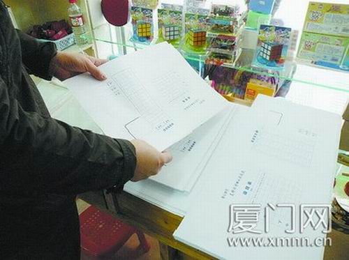 陳同學(xué)和蔡同學(xué)用的都是文具店里常見的一種白色書皮紙,課本用的是純白的,練習(xí)冊因為老師要登記成績,必須用一種印有成績登記表的。“校長說可以用掛歷紙,不過老師都讓我們用買的那種紙!辈掏瑢W(xué)說。