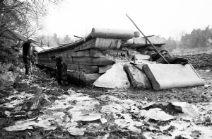 此時(shí),石舫周圍約兩米寬的地方已經(jīng)被草垛圍擋,約60厘米寬的草垛上工人正在檢查施工情況,草垛內(nèi)工人們正在清淤。據(jù)現(xiàn)場(chǎng)施工的張師傅介紹,目前已清淤高度約1米。 “我們是大年初三時(shí)發(fā)現(xiàn)石舫一側(cè)坍塌的,約十天前,我們開(kāi)始圍堵并排水、清淤!睋(jù)了解,在盛夏漲水時(shí)石舫只有約十厘米露在水面外!皬默F(xiàn)在挖的高度來(lái)看起碼有1.7米左右長(zhǎng)期浸泡在水里!睆垘煾嫡f(shuō),“另外,石頭年久失修一定會(huì)造成一定松動(dòng)!