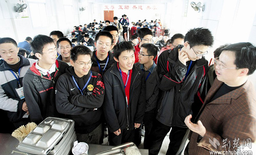 這些學(xué)生代表著中國(guó)中學(xué)生數(shù)學(xué)最高水平,他們將在武鋼三中進(jìn)行為期18天的集訓(xùn)和考試,最后6名勝出者將進(jìn)入國(guó)家隊(duì),代表中國(guó)參加今年7月在德國(guó)舉行的第50屆國(guó)際數(shù)學(xué)奧林匹克競(jìng)賽。