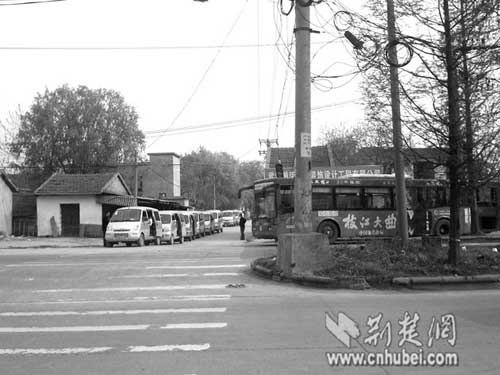 昨日下午3時許,記者來到位于江岸區(qū)諶家磯興諶大道特1號的湖北大學(xué)知行學(xué)院,幾臺電瓶車正整齊地排列學(xué)校后門前,旁邊還雜亂地停放著五輛微型面包車。 “走不走?還差一個,馬上就可以走了!币幻姘囁緳C從駕駛室里探出腦袋問著記者。記者上車發(fā)現(xiàn)里面還有5名學(xué)生乘客。付了一元的車費,司機發(fā)動車子。 4分鐘后,面包車在諶家磯大道嚴(yán)漢灣路口的公交站臺停下。學(xué)生們告訴記者,大多數(shù)師生出行會找“黑的”。而記者注意到,如果不乘坐“黑的”或電瓶車,則需要步行2公里左右才能到這個車站。