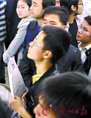 中心人才市場的數(shù)據(jù)表明,前日到場求職的大學(xué)生人數(shù)比春季首場高校畢業(yè)生(東莞)供需見面會的學(xué)生人數(shù)少了一半。相關(guān)負(fù)責(zé)人分析,雖然當(dāng)前的就業(yè)形勢嚴(yán)峻,但是“各種各樣的招聘會密集,四處奔走的求職大學(xué)生已經(jīng)有些疲憊,出現(xiàn)了‘求職疲勞’,當(dāng)然這也和宣傳有關(guān),可能部分學(xué)生不了解這場招聘會的信息”。