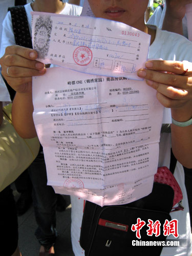 “4月初過來考察時,開發(fā)商也給我們看了預(yù)售許可證,覺得價格合適,證件齊全,就簽訂了認(rèn)購書,交了十多萬的首付款,可正式購房合同卻遲遲不簽。后來從網(wǎng)上一查才知道,這個項目當(dāng)時并沒有取得預(yù)售許可,給我們看的都是假的,所以我們要求退房!蓖瑯觼碜员本┑馁彿空咄〗惴Q,他們多次找到開發(fā)商要求退房,均遭到強硬拒絕。