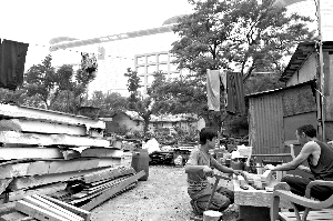 昨日,莊勝二期所在地,居民正在做木工活。 記者 周曉東 攝