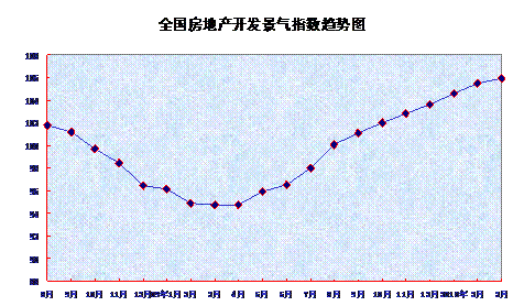 中新網(wǎng)4月14日電 國(guó)家統(tǒng)計(jì)局今日發(fā)布的數(shù)據(jù)顯示,2010年3月份,全國(guó)房地產(chǎn)開(kāi)發(fā)景氣指數(shù)(簡(jiǎn)稱“國(guó)房景氣指數(shù)”)為105.89,比2月份提高0.42點(diǎn),比去年同期提高11.15點(diǎn)。