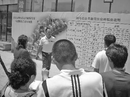 青島首批入圍公共租賃房選房資格的1345戶家庭可以看房了。21日,記者在河馬石公租房看房現(xiàn)場看到,很多家庭全家來看房,套二戶型最受青睞,但只有3人戶的家庭可以選擇,讓不少市民覺得遺憾。