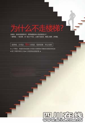 秋季房交會(huì)就快到了,成都樓市又進(jìn)入了“金九銀十”的銷售旺季,各開發(fā)商紛紛加大推廣力度,一時(shí)間,無論報(bào)紙、站臺(tái)、網(wǎng)絡(luò)、短信、廣播幾乎都成了房產(chǎn)廣告的主戰(zhàn)場。開發(fā)商加大廣告投入,一方面是對(duì)十一假期抱有一定預(yù)期,另一方面也是為即將舉行的秋季房交會(huì)預(yù)熱,期待讓更多購房者了解自己的樓盤。但連篇累牘的廣告,鋪天蓋地的資訊,總讓人目不暇接,卻難以留下深刻印象。以至于不少開發(fā)商抱怨,廣告費(fèi)不斷攀升,廣告效果卻不夠理想。但事情總有例外,最近記者就發(fā)現(xiàn)了幾個(gè)能在眾多廣告中脫穎而出的創(chuàng)意廣告。