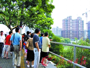 一位在購(gòu)房者臨時(shí)接待點(diǎn)坐了兩天、不愿透露姓名的業(yè)主告訴記者,該樓盤是在2008年11月開(kāi)盤的,第一期的起價(jià)是每平方米1.2萬(wàn)元,到今年4月下旬,第二期開(kāi)盤的時(shí)候,起價(jià)已經(jīng)躥升至每平方米1.3萬(wàn)元,今年5月下旬,第三期開(kāi)盤,每平方米的起價(jià)又漲了500元。