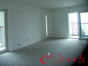 小區(qū)里綠化早已到位,房子也早已建好,所有的電梯都已經(jīng)可以正常使用。記者隨意走進(jìn)了小區(qū)11棟35C單位查看,這是一間約90㎡的三室一廳,有雙陽臺。這是小區(qū)里面積最小,也是最普通的戶型之一。