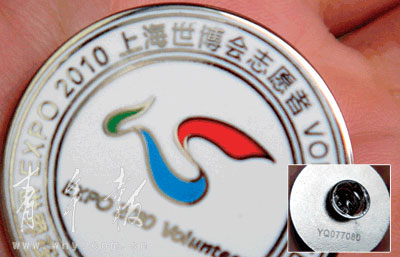 來自作為閔行區(qū)教育系統(tǒng)派出的園區(qū)內(nèi)世博志愿者,王穎卓老師最近幾個雙休日都要進園參加服務(wù)。在最近一周的服務(wù)中,她就聽志愿者說起過有老外開價800歐元向志愿者購買志愿者徽章的傳聞,但是遭到了眾多志愿者婉拒。