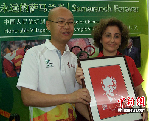 薩翁出生地巴塞羅那的世博展館,正好在國奧村案例館的對面,當天也引來不少中國游客緬懷薩翁,F(xiàn)場,薩翁與中國國家主席胡錦濤的合影、薩翁1992年6月16日傳遞奧林匹克火炬等圖片吸引不少參觀者流連駐足。