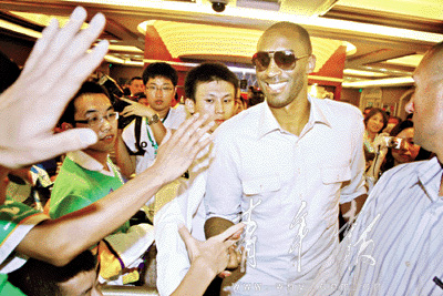 船艙里,穿著科比球衣的志愿者望眼欲穿。志愿者孫濤身上的科比8號球衣昭示著他鐵桿球迷的身份!拔蚁矚g他11年了!”還沒等記者發(fā)問,他便急不可耐地向記者介紹起自己身上地裝備。除了身上那件05版球衣,他還從包里小心翼翼地掏出一件連標簽還沒來得及撕掉的24號球衣,“24代表了超越喬丹的愿望,23+1嘛!边@個時候,眼里還是滿是即將見到偶像的興奮和激動。