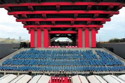 世博園內(nèi),“小白菜”們夾道歡迎老師們?nèi)雸;中國館前,2010名老師莊嚴宣誓,并共同唱響《教師之歌》。昨天是第26個教師節(jié),“奉獻世博·奠基未來”——2010年上海市慶祝教師節(jié)主題系列活動之宣誓儀式在中國館南廣場舉行。市委副書記殷一璀出席儀式并致辭,副市長沈曉明出席。