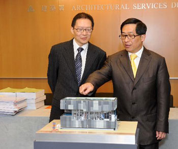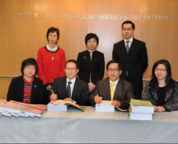 香港建筑署工程策劃總監(jiān)袁家達(dá)代表特區(qū)政府與金門(mén)建筑有限公司總裁何安誠(chéng)簽署合約。合約包括設(shè)計(jì)和建造香港館、內(nèi)部裝修、展覽裝置、園境設(shè)計(jì)、保養(yǎng)維修及在上海世博結(jié)束后的拆卸工程。